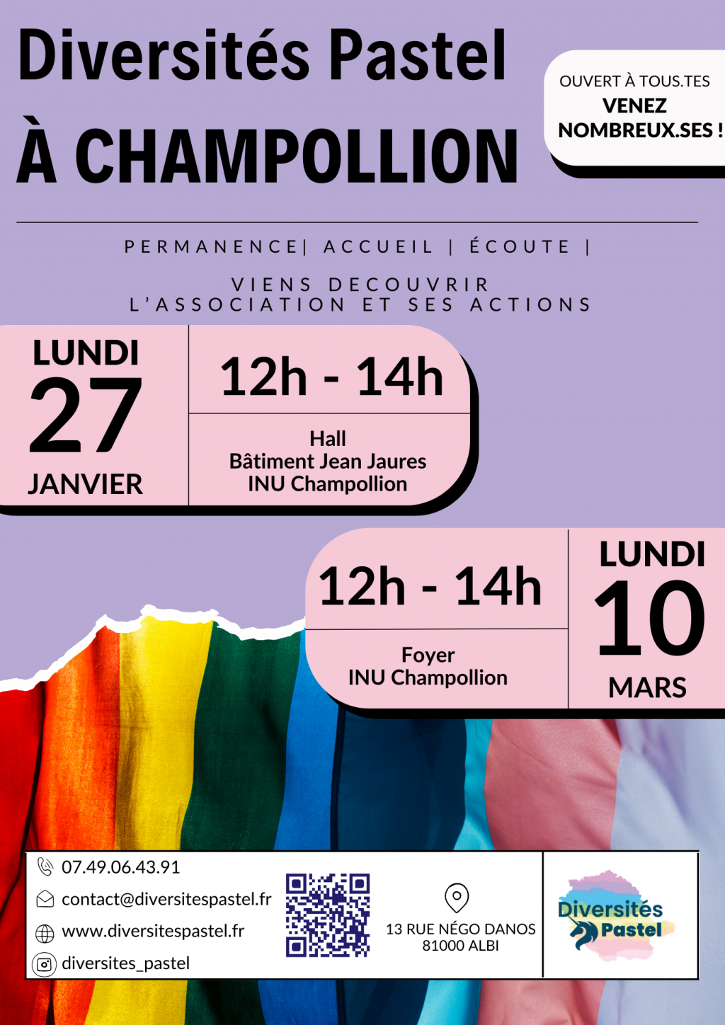 Festival DIAM (Des Images Aux Mots) – 2025 / Tarn Dans le cadre du Festival DIAM (Des Images Aux Mots) et dans la continuité de la coorganisation entre Diversités Pastel et DIAM, nous sommes heureu.x.ses de vous annoncer l’édition 2025 de celui-ci ! A l’occasion de l’ouverture du festival, le jeudi 6 février aura lieu…