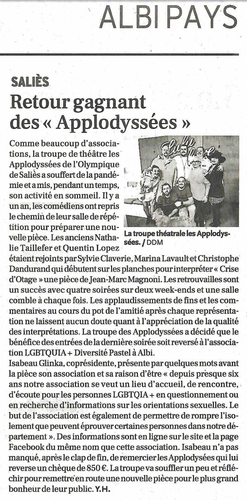 Article de la dépêche, merci à la troupe des « Applodyssées.